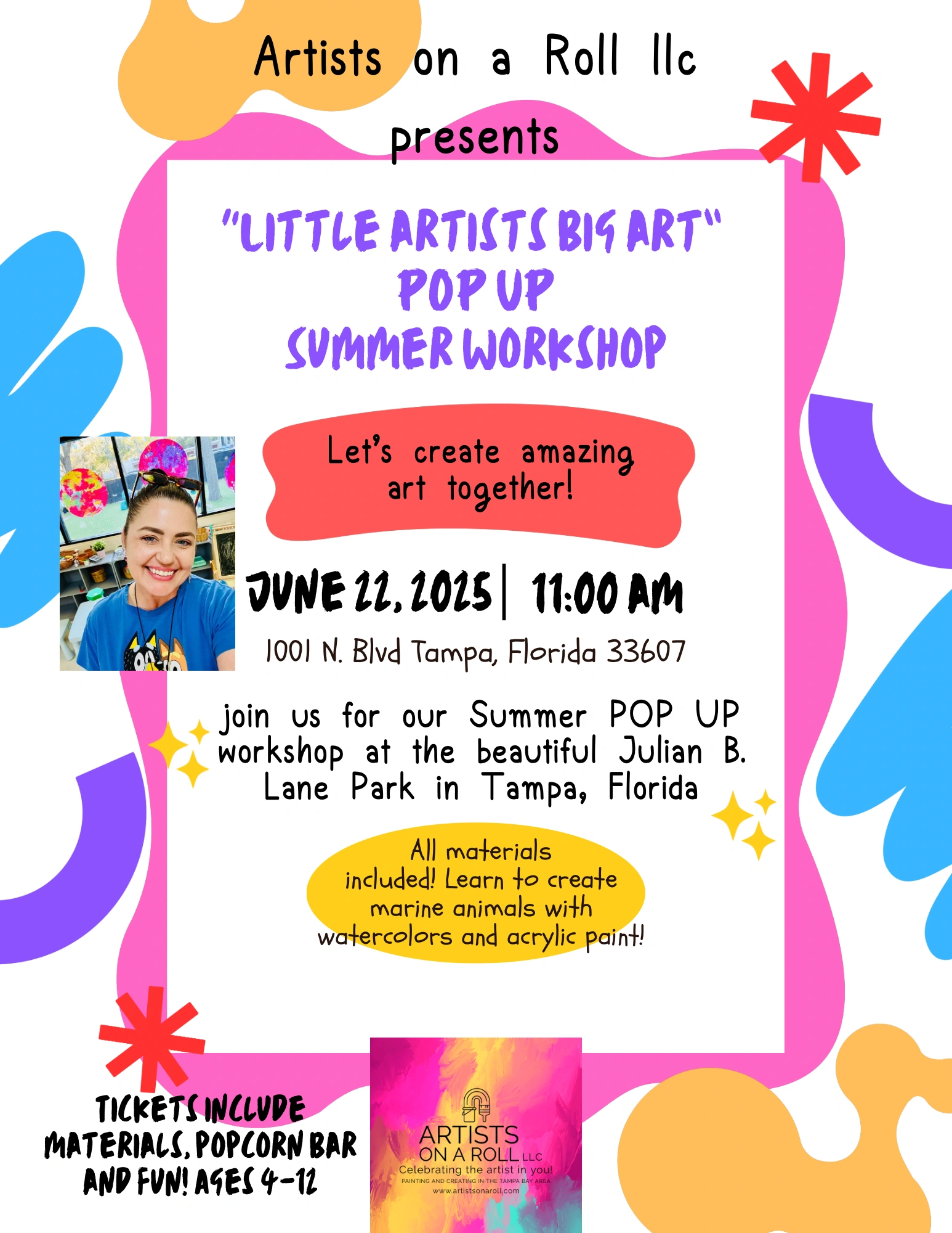 Hello I am Erica Ferguson the creator and artist behind Artists on a Roll llc. What started as a passion for a new found love of painting has now become a colorful thread in our Tampa Bay community.
