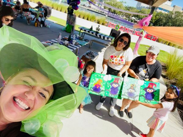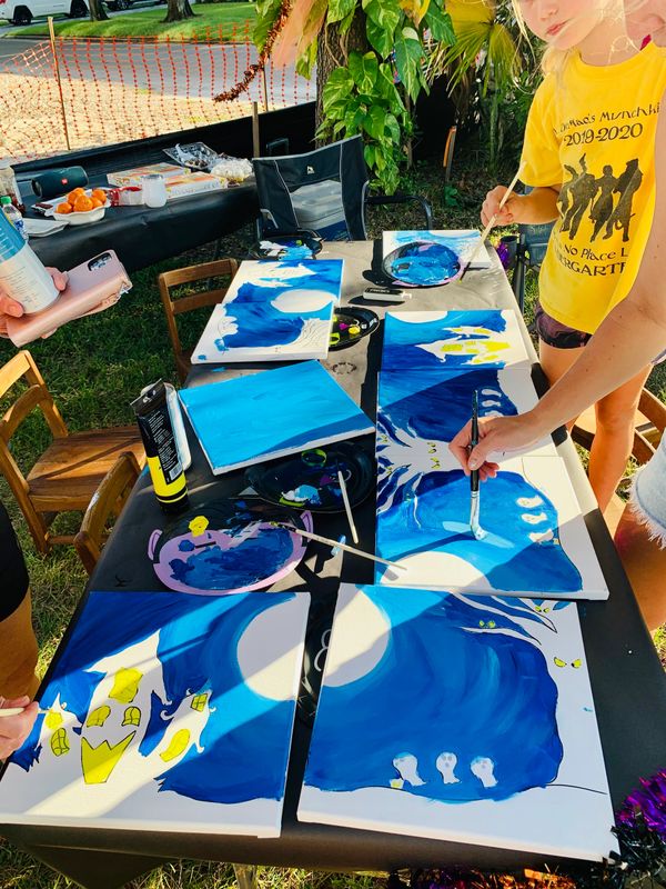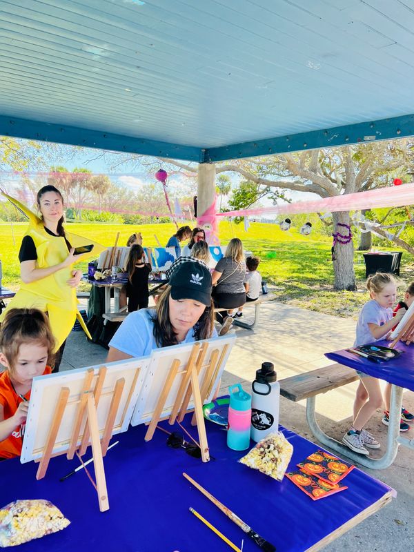 Our first events were “Paint and Sips” and held at our local parks. We now host paint parties of all celebrations, birthday parties of all ages, paint and sips of every theme, public events and team building workshops. We host art camps and art enrichments at local schools encouraging little artists of all ages. We have participated in many school fundraisers and local charities. We are always looking for opportunities to help our community.