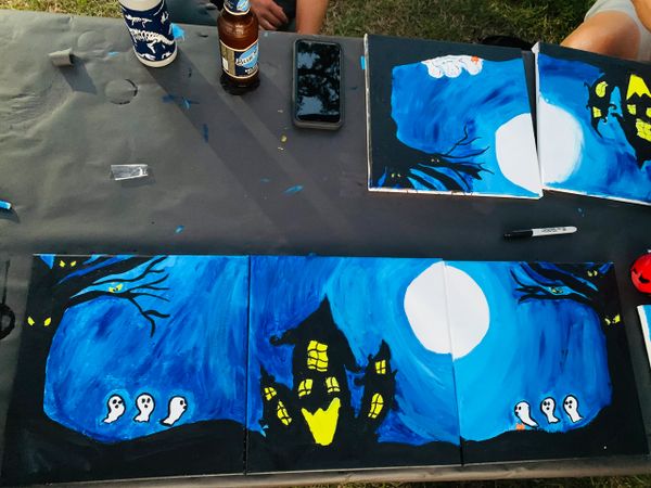 Artists on a Roll brings the party to you! We set up in local parks, breweries, restaurants, event spaces, schools, your home and your backyard. We bring all materials needed to create beautiful masterpieces in any space!