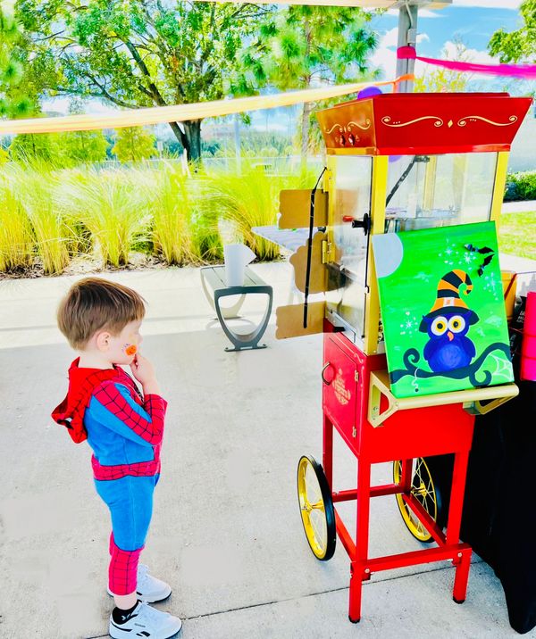Our party packages include hand drawn canvas art created by Erica Ferguson. Party decor to match your special theme, balloon clusters, themed goodie bags, popcorn machine rental and much more!