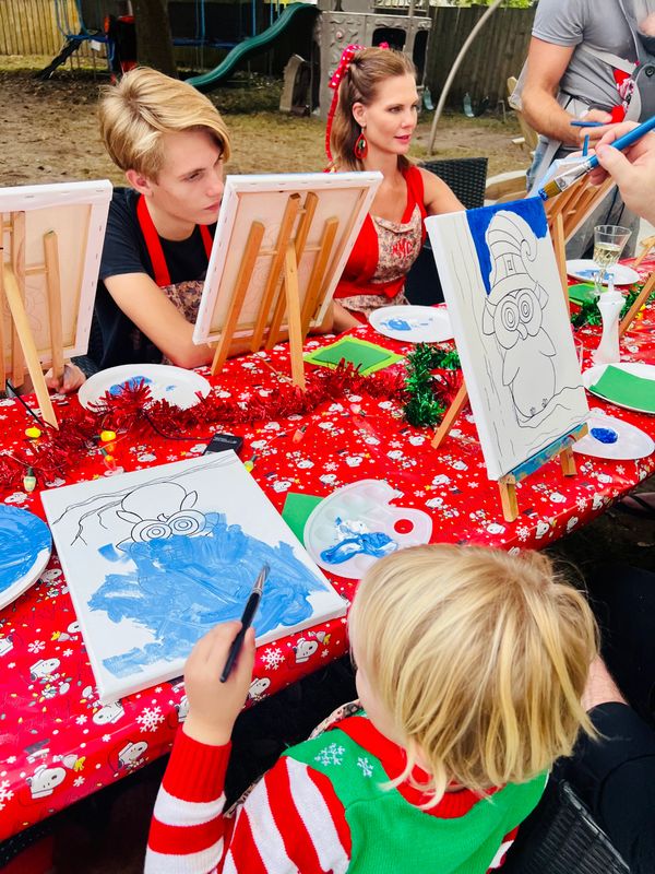”Art Parties” with acrylic painting and watercolor on canvas. Themes include: characters, holidays, animals, nature, custom art available.